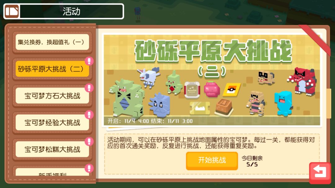 10月28日至11月17日,通关难度更高的砂砾平原极限大挑战,获得更多奖励。