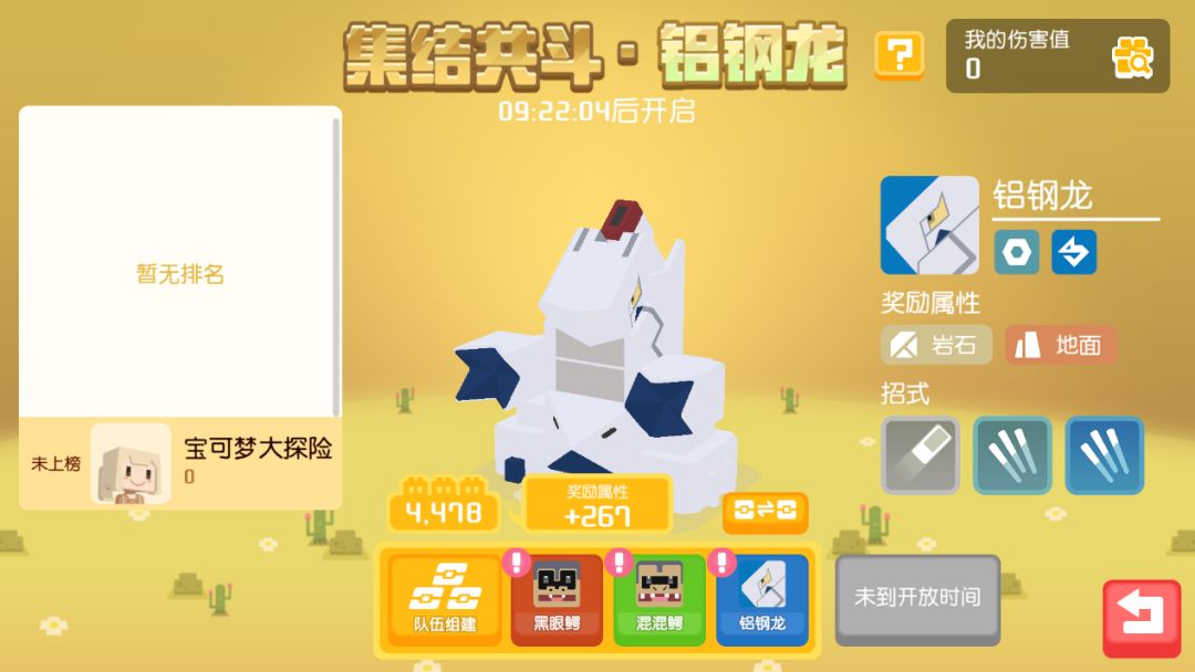 10月28日更新后,将连续三周周末20:00至20:15迎来砂砾平原强大宝可梦首领的挑战。10月30日-10月31日挑战“盔甲鸟”,11月6日-11月7日挑战“铝钢龙”,11月13日-11月14日挑战“班基拉斯”,全服探险家合力挑战成功将获得丰厚的奖励!