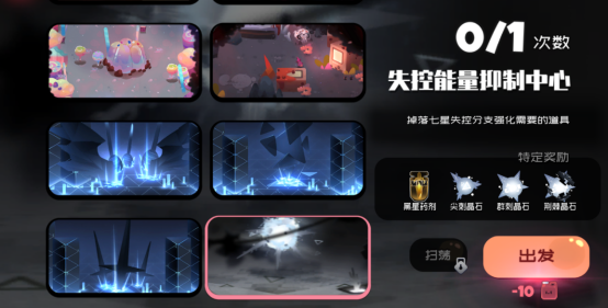 资源区实装了一个新的副本——失控能量抑制中心失控能量抑制中心会掉落用于七星失控分支进化的材料道具。需要消耗10燃料,每日可免费进入一次。可以通过爆汁软糖补充关卡次数,每日可以补充一次,每次需消耗5爆汁软糖。