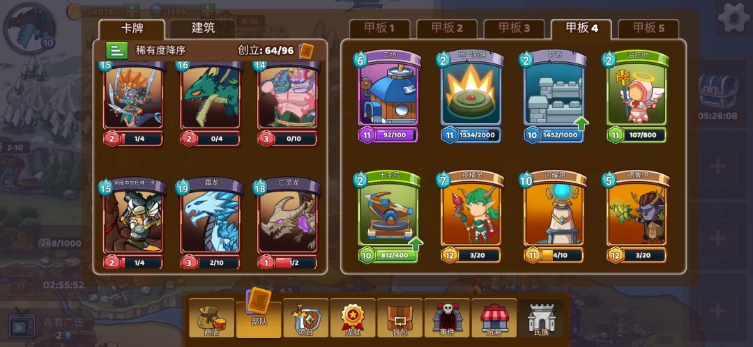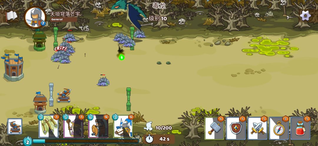 毕竟我们前期只有这些卡牌,只能用这些卡牌去挑战7级以下的前三条龙,而在这些卡牌里,芬奇,十字弓和地雷必须尽可能提升等级。这是对付前三条龙的关键,接下来我教大家如何用这套卡组打龙。