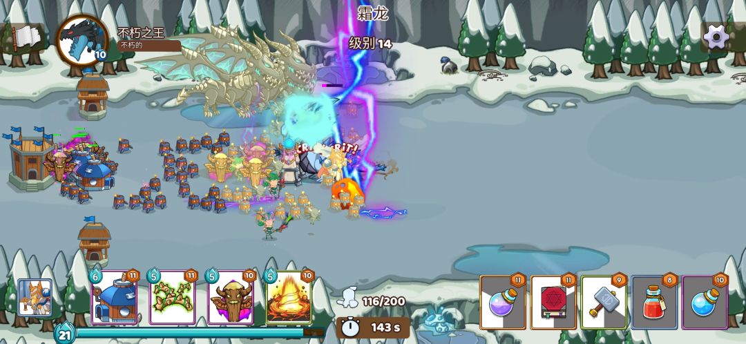 卡组和道具组还是和我本人用一样的,如果没有好的卡牌组合的话,例如没有闪耀塔和夜精灵也可以用炎龙和熔岩泰坦代替输出,闪电龙也很强力,只是打的会比较慢。龙山到了后期,因为没有好的卡牌卡在某一级是在所难免的,但是用我上面说的分散打法加法术也是可以慢慢过的,只要自己调整好卡组,找准时机和方法;或者也可以像我图里一样霜龙直接控住那三条龙,再用他其他卡牌一顿输出。至于最难打的霜龙嘛~用最低标准的卡组和道具组去打,要是打不过,那就是你们卡牌和道具等级低了,得变得更强才行了。