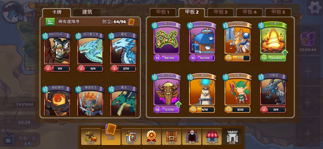 那么我们接下来说说7~10级的前三条龙怎么打,这个阶段,用初期卡牌已经没用了,我们需要用史诗混合传奇卡牌来挑战他们,在这里,我推荐如下卡组和道具。如果你们打龙没有出传奇宝箱,也没有这么好的卡牌,那就只能先看广告攒金币商店购买强力传奇卡了。