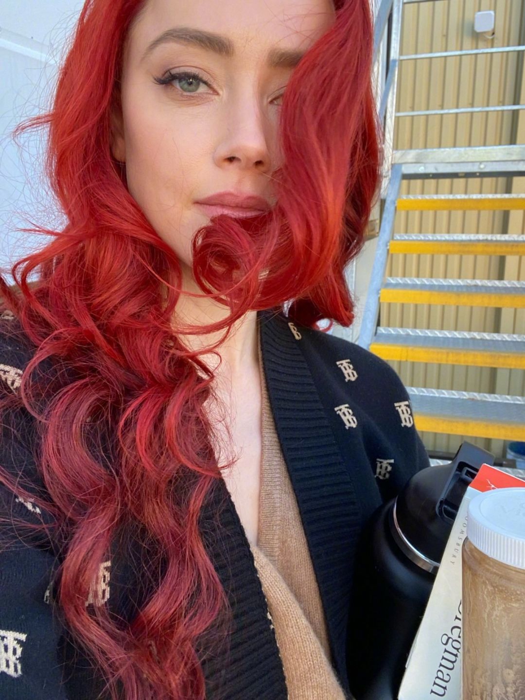 艾梅伯·希尔德晒《海王2》片场自拍 红发媚拉超美