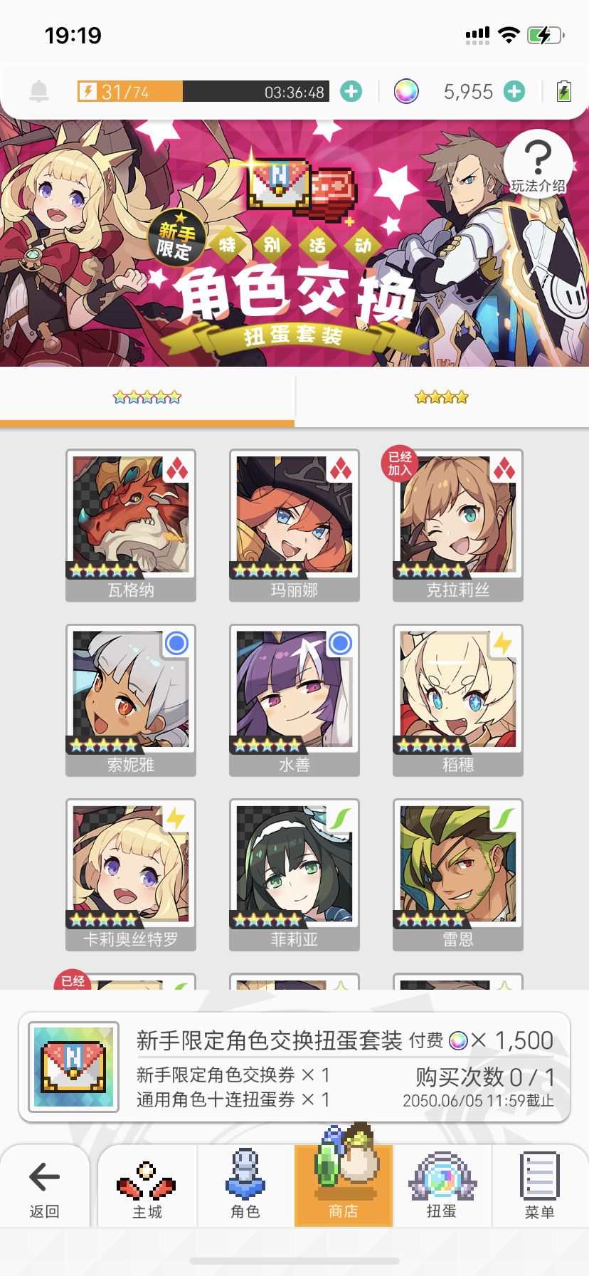 商店→购买特殊礼包→新手限定角色交换扭蛋套装