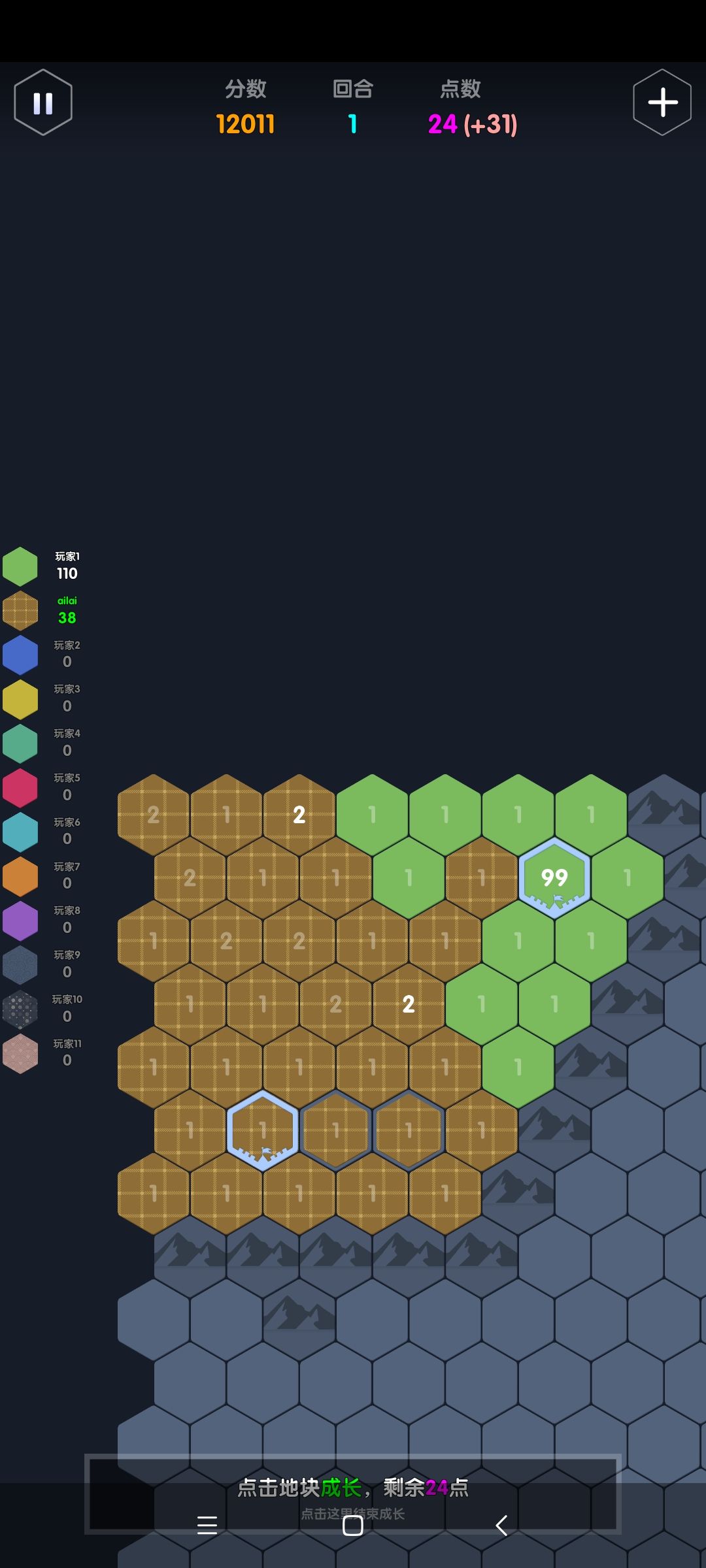那么,知道这一点,就可以通过适当加点引导ai的进攻路线。在图1这个情况,就算举国之力也不可能挡住99的巨量点数,见下图2图3