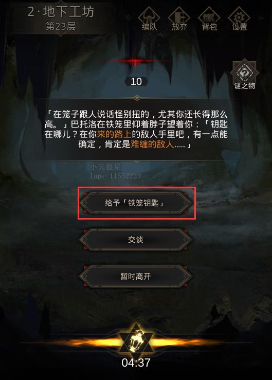 随后,【巴托洛】打断了我们的沉思,说来的路上有没有捡到钥匙,你们拿出了战斗后留下的钥匙