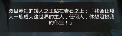 随着你们的到来,他双目赤红的大喊:我会让矮人一族成为这世界的主人,任何人,休想阻挠我的伟业!