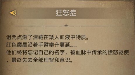 由于熔岩结晶的影响,唤醒了潜藏在矮人血液中的特质,被血脉中传承的愤怒所驱使,成为毫无感情的屠杀者。
