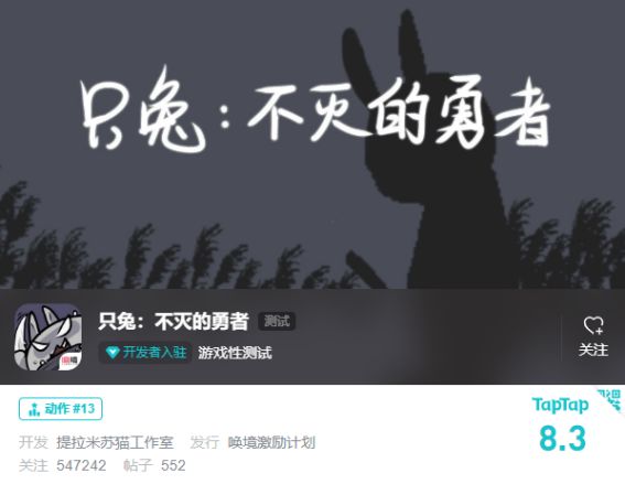 以上内容均出自游戏《只兔:不灭的勇者》的论坛评论区。这款以一只武侠萌兔作为主人公的2D横版动作游戏,自今年1月份上架以来,《只兔:不灭的勇者》已被54万TapTap玩家的预约关注,并收获8.3分好评,累计玩家量超百万!这个数字到今天仍在持续增长,可见其受欢迎程度。