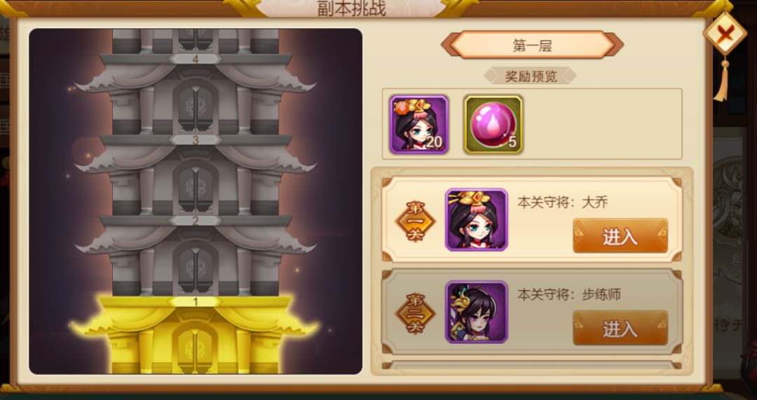 2、首次参与挑战均从第一层第1关开始,上一关挑战成功后,才能解锁下一关,同时领取通关奖励。