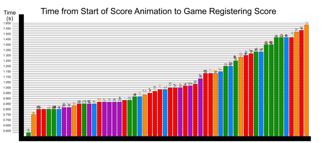 近日Reddit 用户 TacoTitan555测试了《宝可梦:大集结》中所有56 个可玩宝可梦的得分速度,并将所有数据汇制成图表。