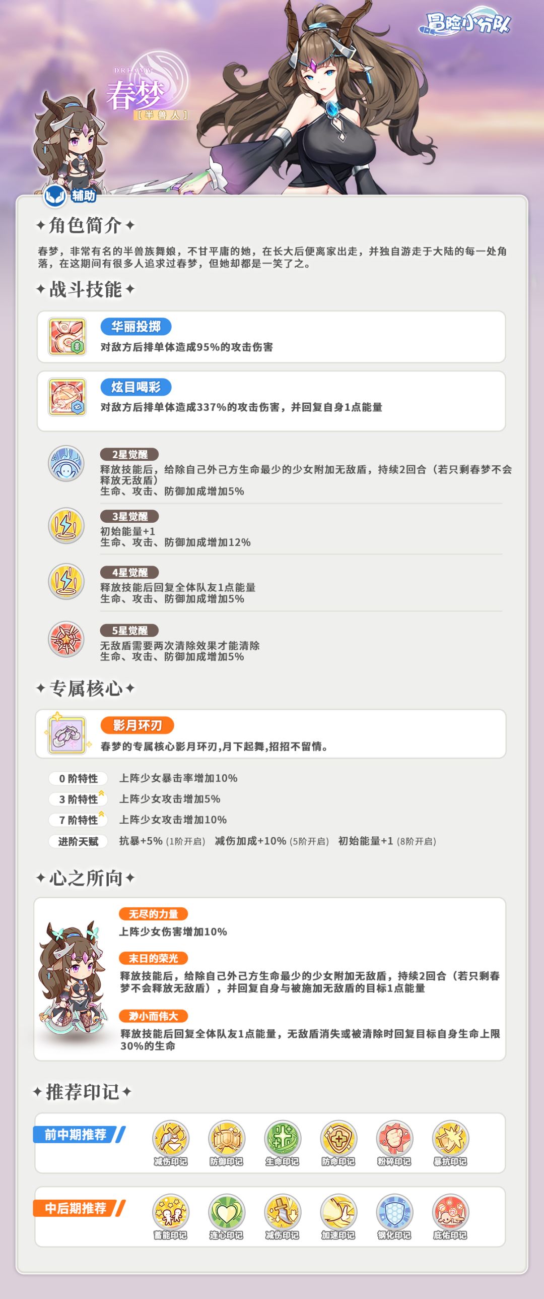 简介:春梦,非常有名的半兽族舞娘,不甘平庸的她,在长大后便离家出走,并独自游走于大陆的每一处角落,在这期间有很多人追求过春梦,但她却都是一笑了之。