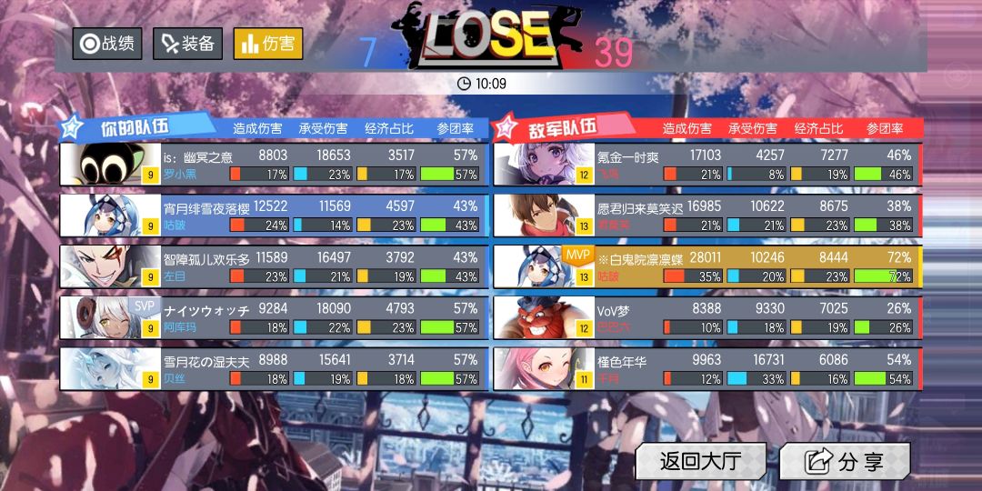 这局开局就0-6,对面四个人抓我的时候我暴击刀已经出好了,言和两喷就没了,中间依靠一技能,刷野速度飞快,可以选择去把对面的野怪刷一刷,依靠经济压制更好打,对面的咕啵是按系统推荐出的装,不过带了个瞳,但是在同等经济下,他还是喷不过我,伤害很高,不过咕啵本身较脆,需要注意一下走位