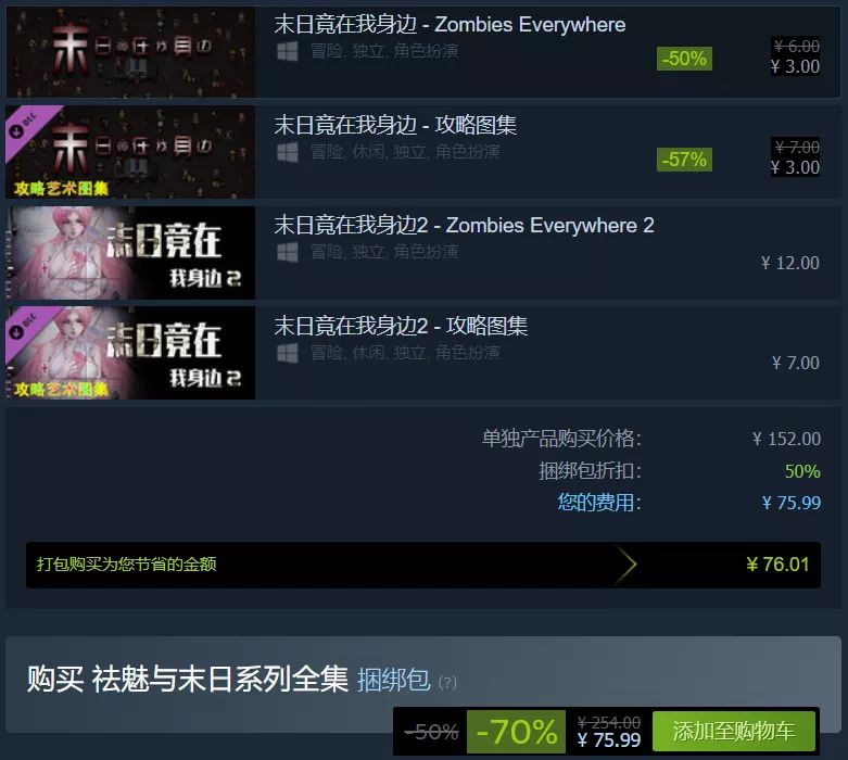-70%OFF,5款游戏+8DLC包,原价254,现仅售75元