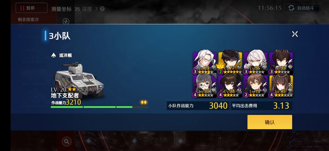看图就知道我的练度不高,就简单说下打法。1,2,3队强度看顺序,也就是一队最强,二弱点,三队上个级高的队长。三队之间会互相支援的,也就是说你三队弱没事,只需要上角色拖时间到一二队的支援上场就行。