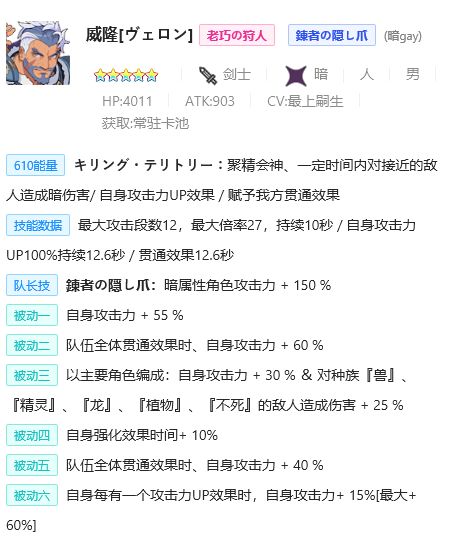 大家开局都在刷的暗gay,举例他也是因为非常的有代表性,本身优势首先是高额的攻刃,放在队长sub位提升非常大,而且极高的技能伤害与技能释放的范围也是加分点,最主要的还是自身非常契合jbq,长时间做队长sub位与绊枪绑定,6版4,5,6技能也是没有一个弱的(后面才会更新,这里只是做一个引申),简单粗暴的强度,强者恒强。