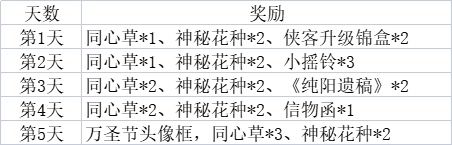 神秘花种*6,信物函*6,铜板*30000,乌梅糖*12,同心草*3