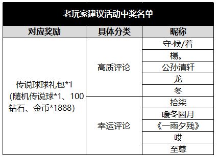 感谢各位小伙伴的热烈参与,以下为本次”老玩家建议有礼“中奖名单~