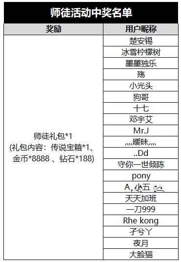 感谢各位小伙伴的热烈参与,以下为本次”师徒活动“中奖名单~