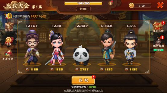 ★最后一个侠客可以在外功锤子侠客耶律齐、天锤、金毛、断浪中四选一,当做暴击主力,也可以在内功侠客乔某/岳步群中二选一,乔某和岳步群都是群攻伤害有增益,但是乔某增加名士血量,而岳步群的伤害更高一点。断浪需要在试炼塔兑换。