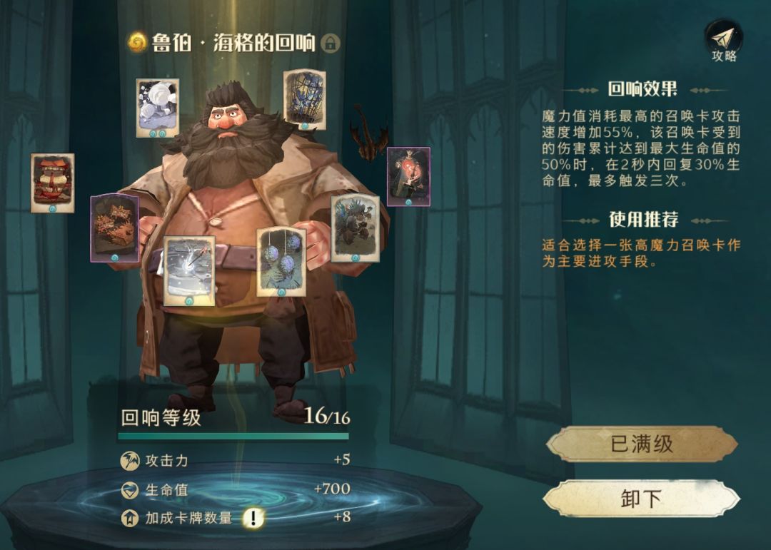 卡组中魔力消耗值最高的召唤卡攻击速度增加55%,该卡受到的伤害累计达到最大生命值50%时,在2秒内恢复30%的生命值,最多触发三次。