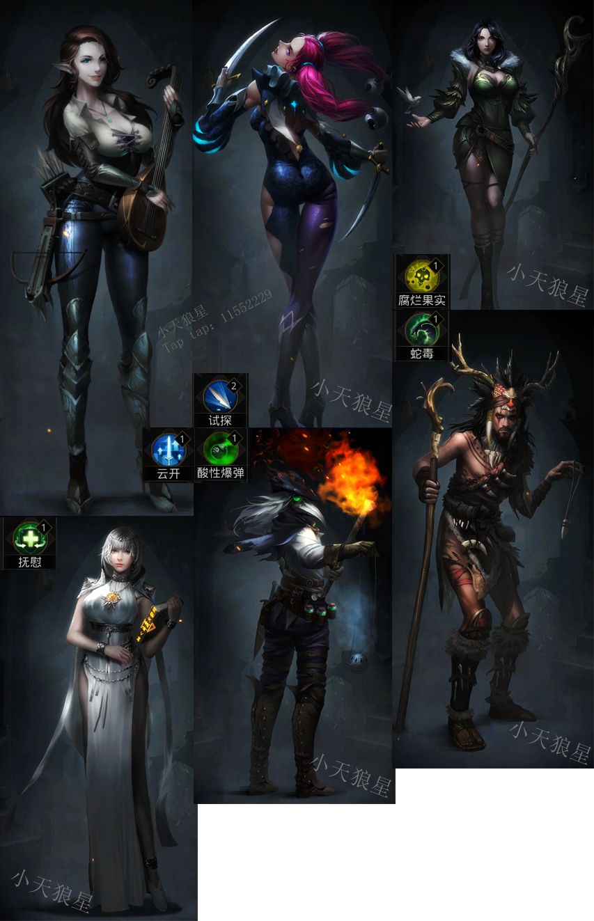 【晨光】[抚慰]持续施放(其他都关)【告死鸟】[酸性炸弹]持续施放(其他都关)【蛮巫】[蛇毒]持续施放(其他都关)