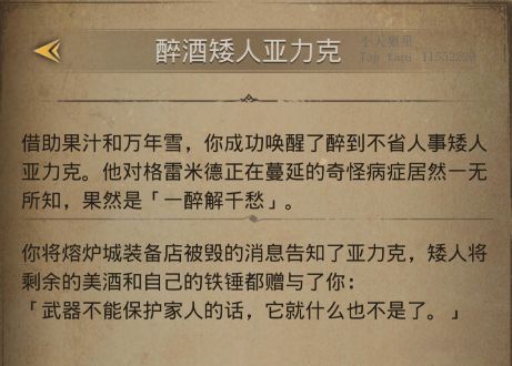 在来唤醒【醉酒的亚力克】,触发第二种结局