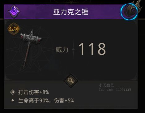通关获得一个紫色绑定武器【亚力克之锤】(没错,就是那个醉酒的亚力克)