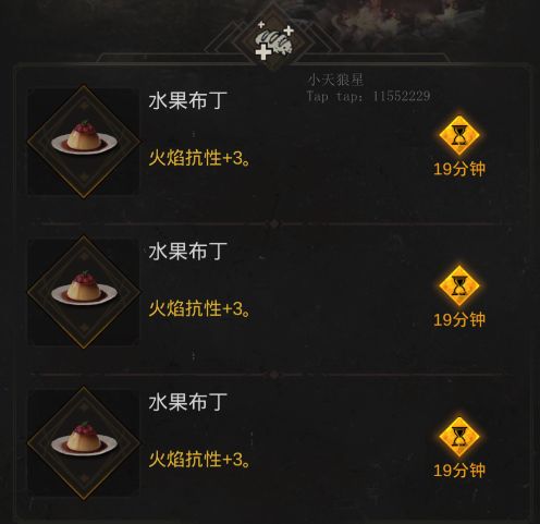 回到地图,在左下角食物栏中吃掉3个【水果布丁】