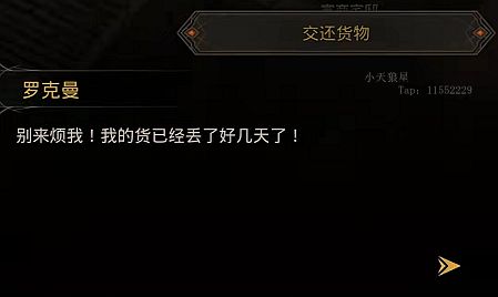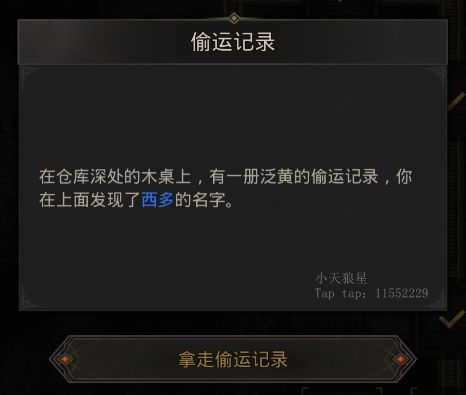第四:【偷运者仓库】第1层拿到【偷运记录】需要拿回给主城【马车商铺】,得到皮革X4,第2层拿到【罗克曼的货物】