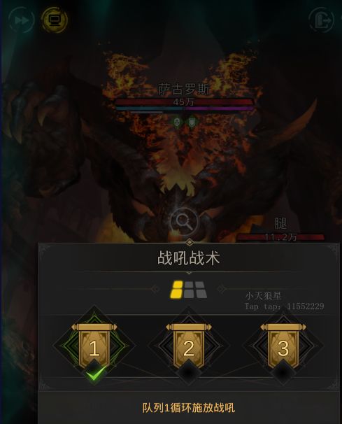 第二阶段:【主攻阶段】右上角战吼立刻切换到第2排,目标立刻切换到主体上,进入第三阶段,真空。