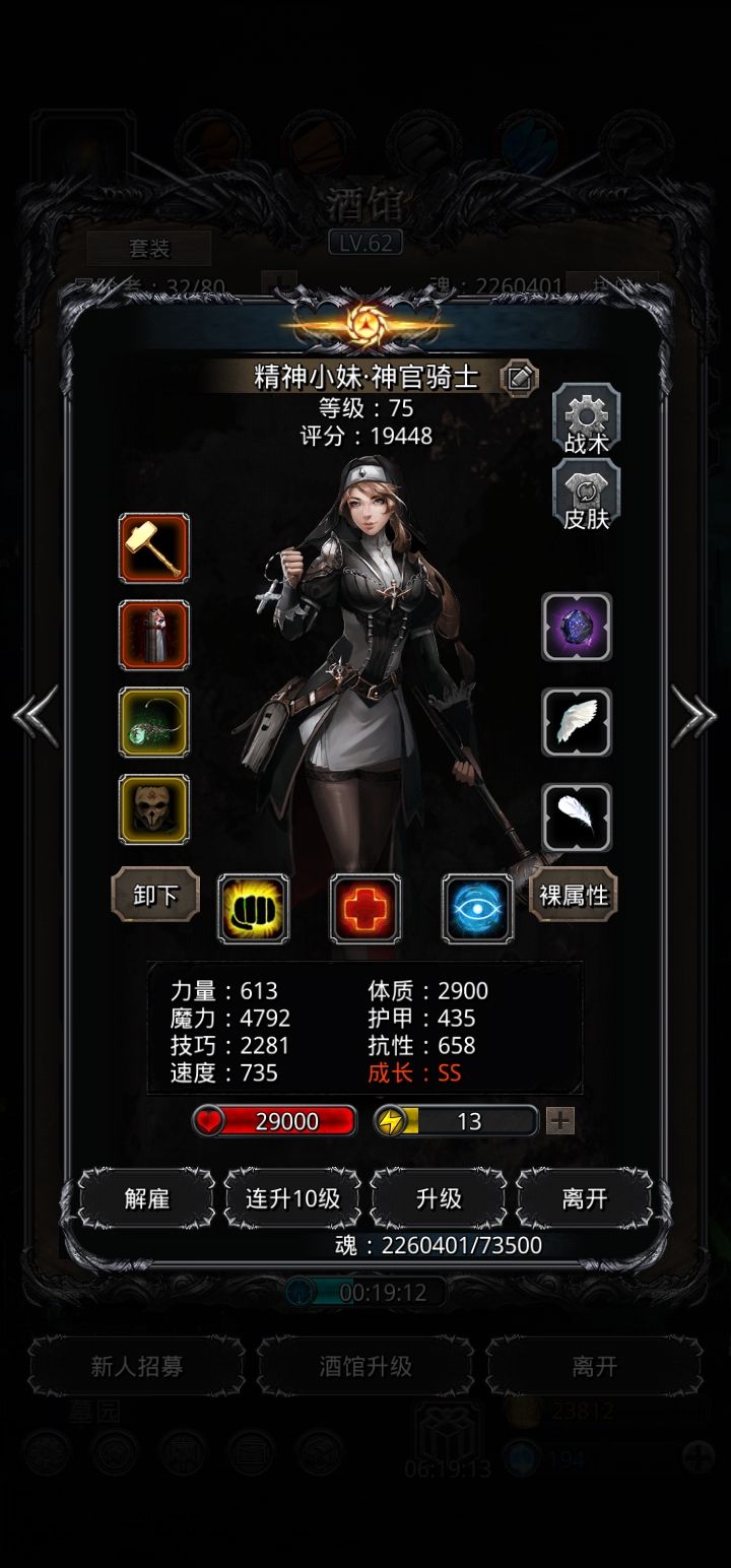 不得不说柱子低是比较难打,试过黑骑,血量完全扛不住,所以用圣龙,因为我刺客属性也低,所以输出有点不够,需要让圣龙在生死的边缘疯狂试探,圣龙防低,反伤就高,这血量比较极限,单攻最高掉3.3万血。所以我奶骑也是全堆的奶量,即使这样也是圣龙经常暴毙!要疯狂试探,哈哈!这里奶骑祈神可以换镜子,实测差别不大。鱼肠剑比火神能扛一点,输出嘛也差不多少!都属于微调,柱子高的话选择会更多