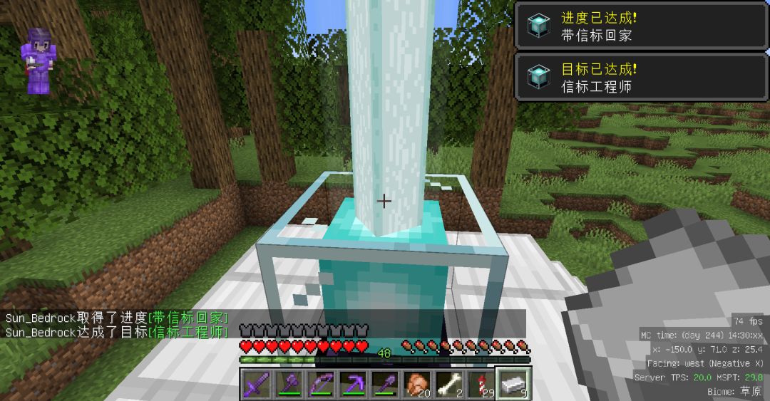 有了信标的急迫贰的加持下,挖史莱姆区块还算顺利。就是点亮周边的矿洞比较繁琐,而且稿子消耗的耐久比较快