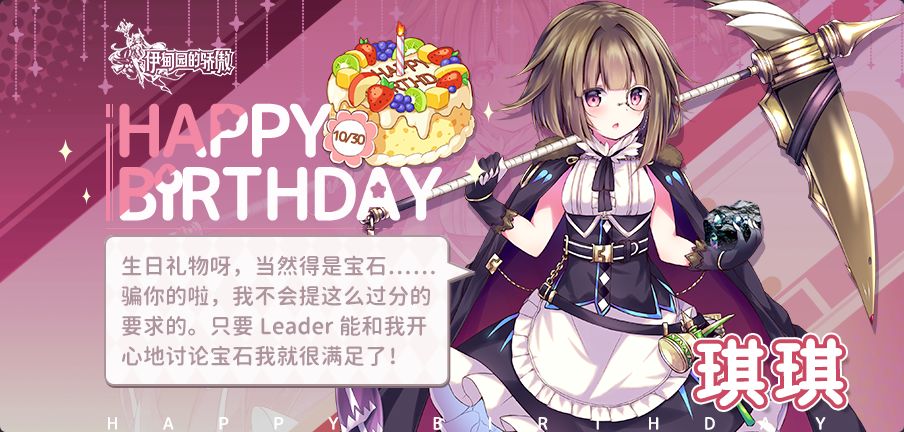 今天是宝石商人--琪琪(CV:小岩井小鸟)的生日哟!让我们一起为她送上生日祝福吧(*^▽^*)