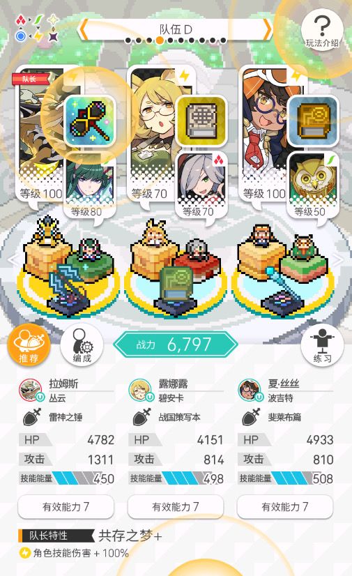最后说一下大家在开车的时候可能遇到的问题,首先工具人队最好不带男主因为男主ub需要索敌所以auto不能立刻释放会导致乱轴,最好带能立马释放技能的buff型角色。下面是我小号的工具人队,可以平替的角色很多,参考一下就行。还有就是3个人一起共斗时,必须保证有两个工具人,首先其他两队必须开局ub全放,这样才能保证雷龙ub打进down状态。其次哪怕是一个人不上工具人队但不放技能也不行,因为弹射的炸c机制是如果还有技能没有放就会延长炸c时间并等待一小会,比如两个人打先放了5个ub,这时可以炸5c但是不会立马炸c,而是会等第六个人的ub释放瞬间炸c,只要所有ub放完会立马炸c,这也是雷踢队的核心。总结就是必须要释放所有技能并且保证雷龙的技能是最后释放。