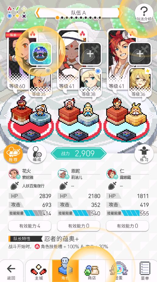 下面来看一下具体盘子搭配。这个盘子对box要求还是比较高的,不建议零氪金玩家抄作业,人物方面的话配置要求一般,除了从云刷大蛇掉落或者兑换以及困难1-4白嫖的猫头鹰,其他人物都是三星四星的(第一天1w钻才捞出来技工,所以人物齐不齐还是很看运气)。武器方面要求就比较高了