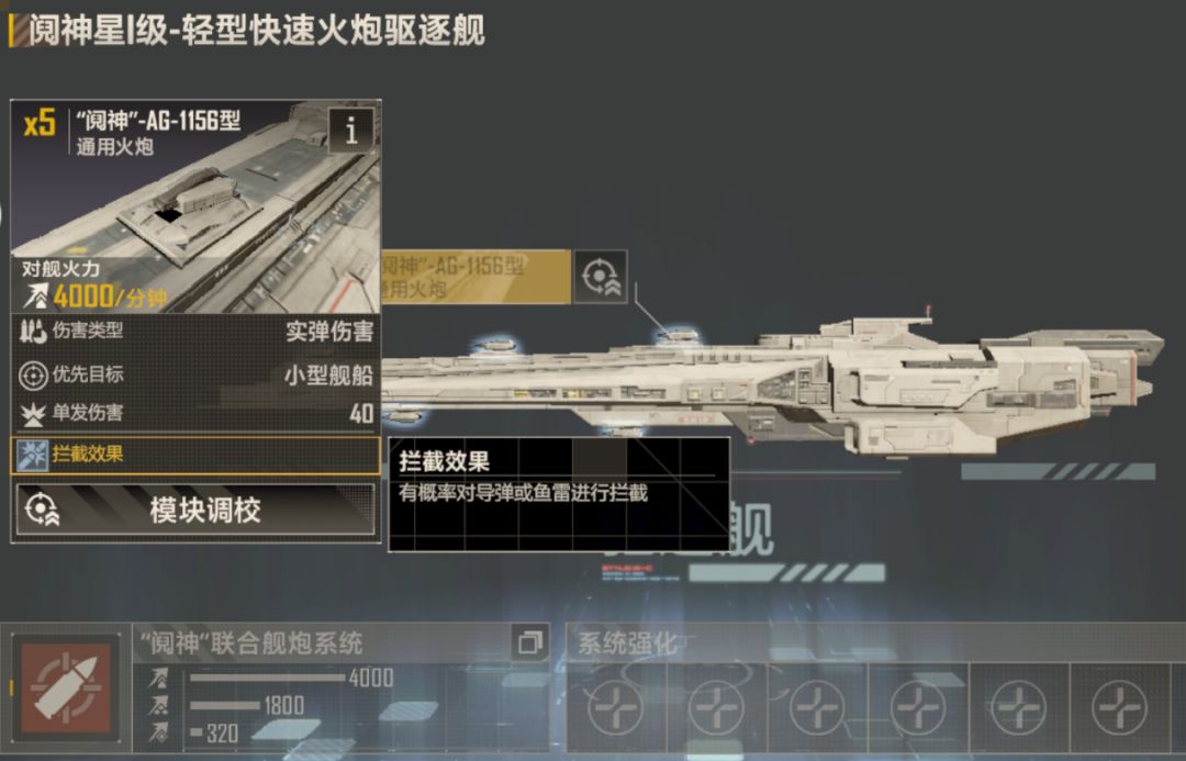 ●阋神星原型:配备五门轻型火炮,其中火炮有概率可以拦截导弹及鱼雷,单发伤害较低,但是射速相对较快,可以对小型舰船造成有效打击