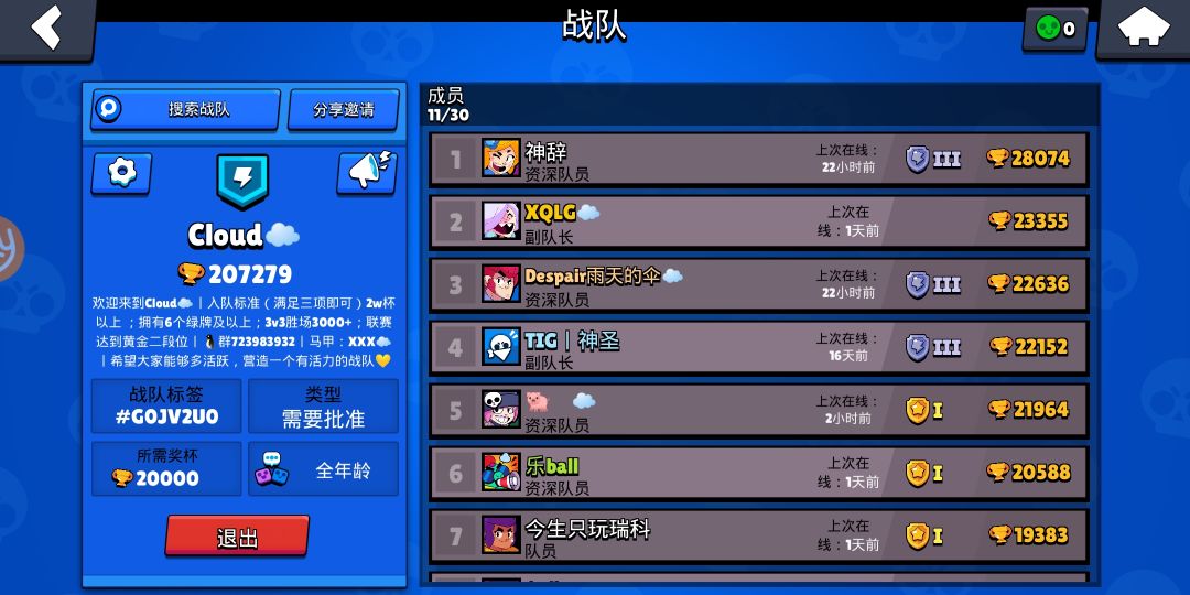Cloud☁欢迎你的加入!不管是33玩家还是双鸡玩家都能在Cloud☁战队找到你满意的队友!一起冲击战队赛!欢迎来到Cloud☁丨入队标准: