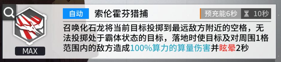 3.芬恩进行召唤之前受到算力强化,是会反应到化石龙的属性上的,但是要在施法开始之前(化石龙召唤要3s),不是化石龙出现之前(也就是说开局第一次的召唤,吃不到七花光环德妈链子之类的效果)