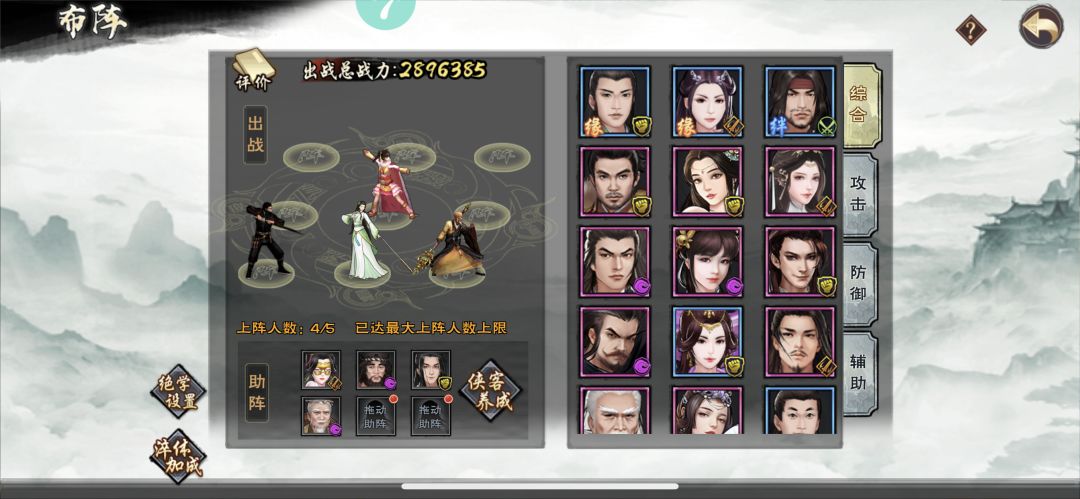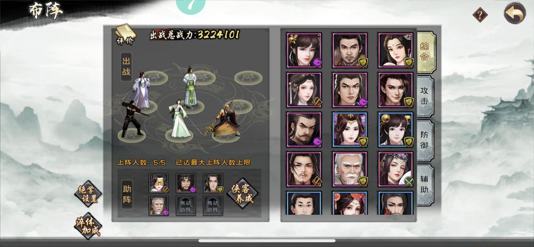 3.4.1(推荐):进少林,把委托和4甲悬赏做完,第一天买少林新秀内功和新秀棍,等到昙宗(和尚)入队给他练,其他人除了主角和和尚其他所有人武功都先不要花威望突破,到20级把票洗出来。然后和尚所有武功、主角吐纳术+逍遥棍+七星梅花棍拉满,其他带一个荆轲+小玲儿,还过不了马王窟就做做装备、优先级是和尚—主角—荆轲,还不行就给荆轲武功升升级,不出意外稳过马王窟,随便扫荡一下攒点培养丹然后到21级,第一天就可以结束了。第一天的阵容应该是这样,正常战力在24w-27w之间,取决于你花了银票做装备没,个人看法能打过关就没必要花。这个是通关站位,先把小玲儿送掉,如果追求满星就要把主角和小玲儿换一下,但是这样有可能会打不过。