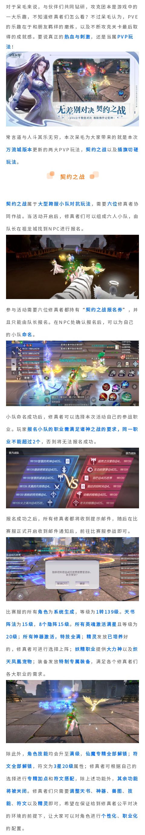 所有修真者可在规定时间内配置角色,之后服务器将关闭,待到契约之战正式开始时,修真者可以进入比赛服,并被自动传送到大世界,参与契约之战。