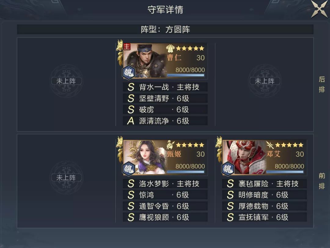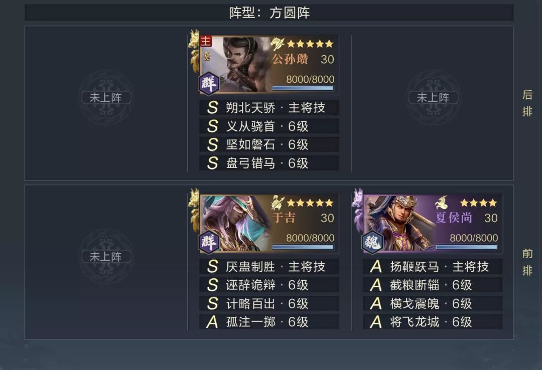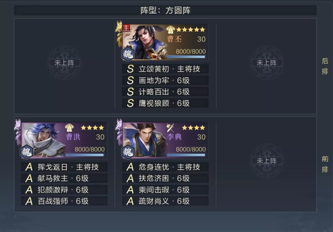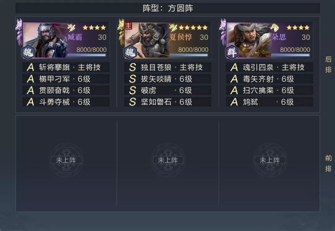 第一关主将站位非常暴露,直接使用两名强度尚可的武将进行突破即可,建议235站位。