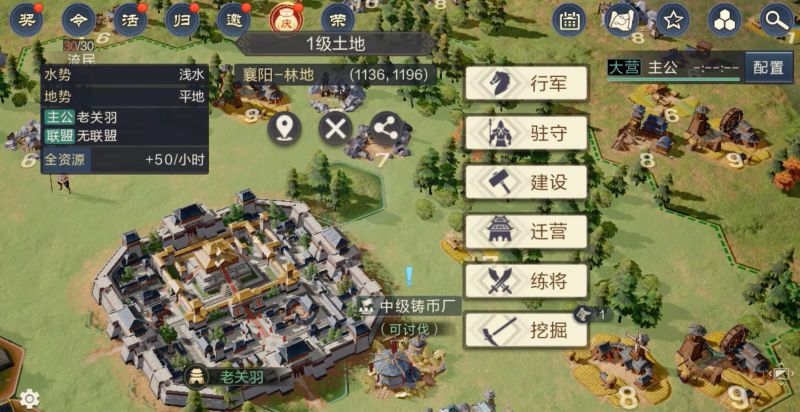 虽然地势为自然因素,主公却可以通过挖掘填平行为,改变地势的高低,从而影响土地的水势。只要主公谨记水势=积水-地势这个设定,即可人为的影响地格最终的水势,无论是挖掘战壕蓄水,还是填平洼地出征,都对联盟至关重要。