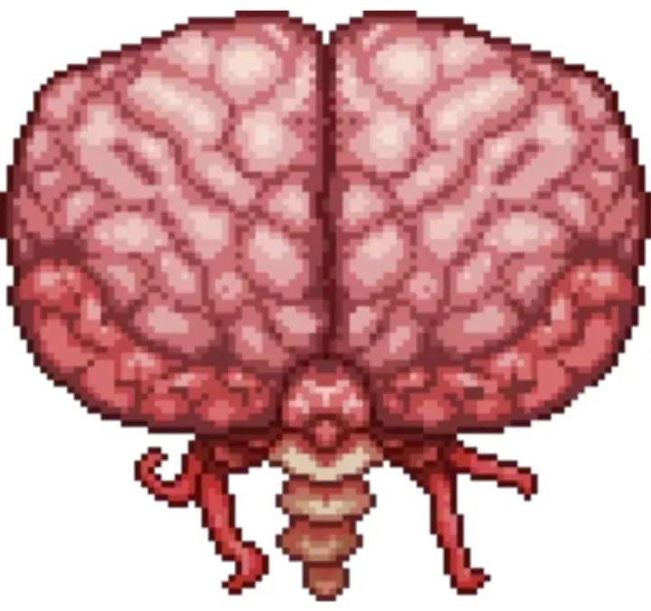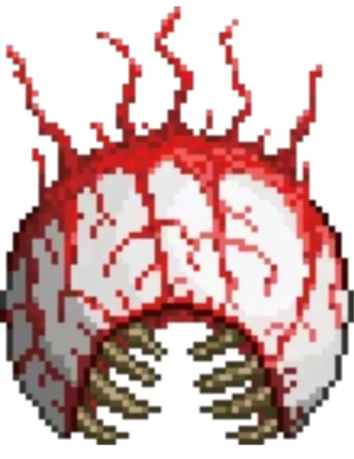 玩家摧毁3个生成于猩红世界中的猩红之心就会召唤克苏鲁之脑,也可使用血腥脊椎在猩红之地进行召唤。