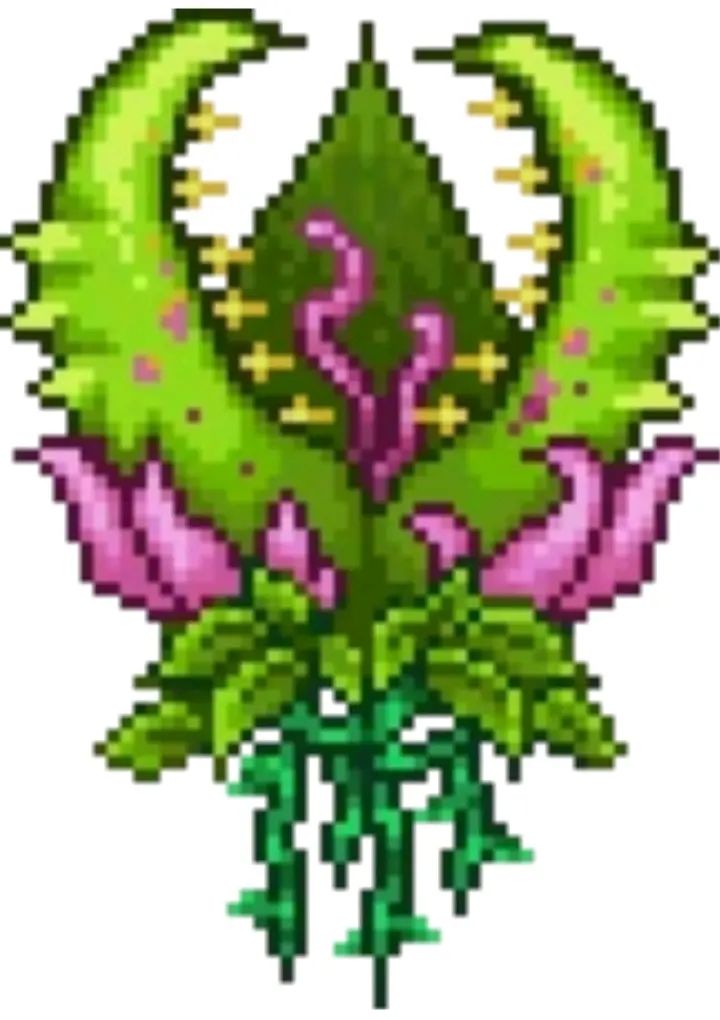召唤方式:肉后三个机械Boss被击败后,世纪之花花苞会随机生成在地下丛林中,用镐子/钻头摧毁花苞便会召唤世纪之花