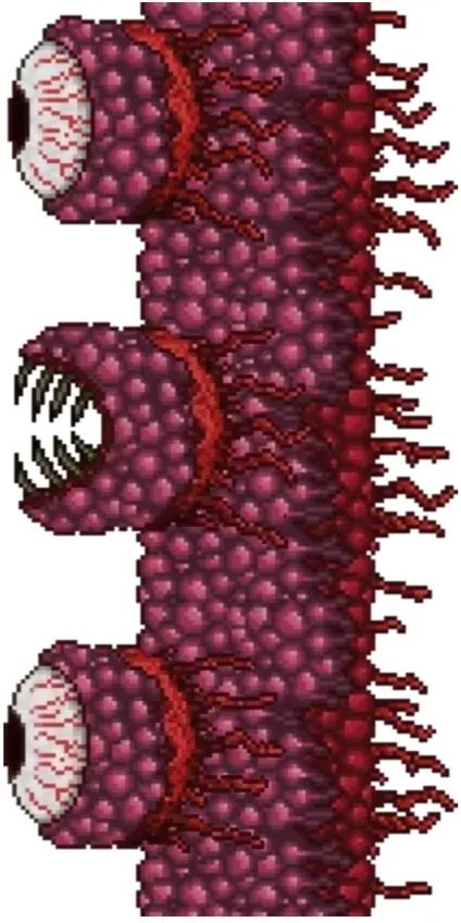 召唤方式:向导活着的情况下,在地狱中将向导巫毒娃娃丢进熔岩,会立刻召唤出血肉墙并杀死向导