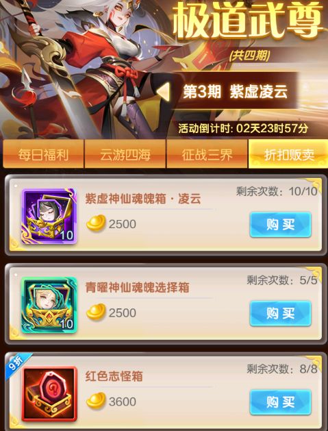 3.神仙(100片紫一 50片青三 总37500元宝)