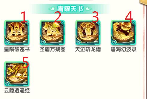 5.书阁(神仙三选、神仙二选、幻仙五选各50片 青幻紫书各15片 总75000元宝 )