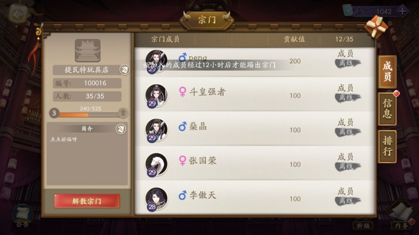 客服进来看bug!宗门t不了人!!