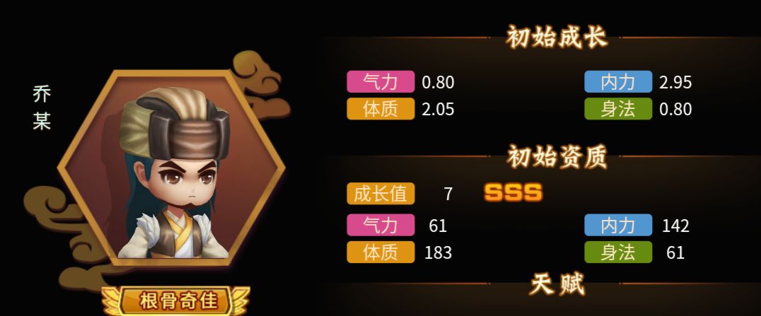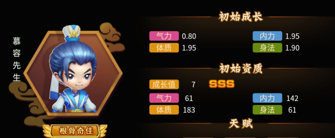 综合评价:1.S级辅助,天赋一让其成为五维战士,但是作为一个没有输出天赋的辅助,外功和内功的提升意义不大,反而初始的61身法有点尴尬。2.天赋二的游侠增益非常不错,很适合和主角一起出场,或者其他走控制的游侠,但是游侠队的问题在于没有强力输出。3.之所以能评为S级辅助,因为其经脉技能实在是炸,持续三回合的全队五维debuff,非常有价值。